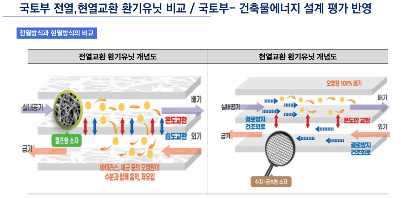특히 2025년 1월 ‘건축물에너지절약설계기준’이 일부 개정되면서, 그동안 전열 방식에 한정됐던 열회수형 환기장치 평가 기준이 전열·현열 방식으로 확대됐다.